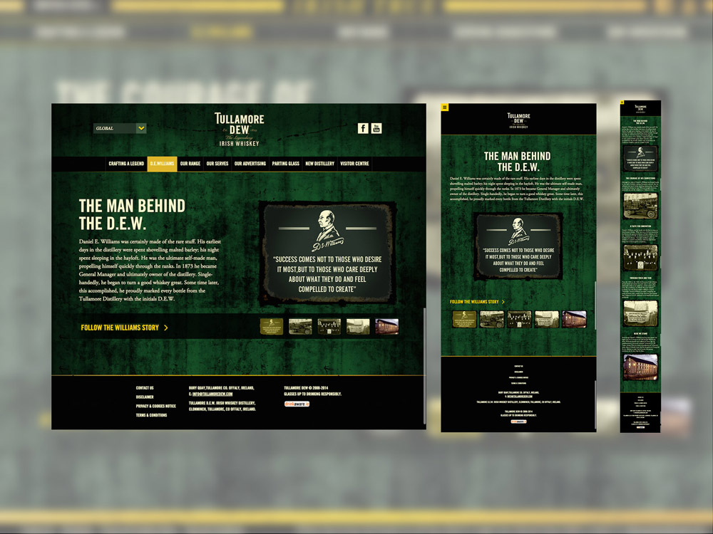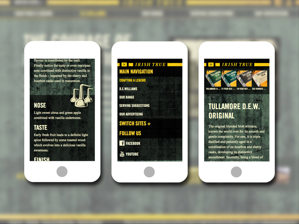 2013 / 2014 - I built a fully responsive website for Tullamore D.E.W. as part as their digital rebranding. I designed the UX for mobile platforms reusing the same look&feel and markup.